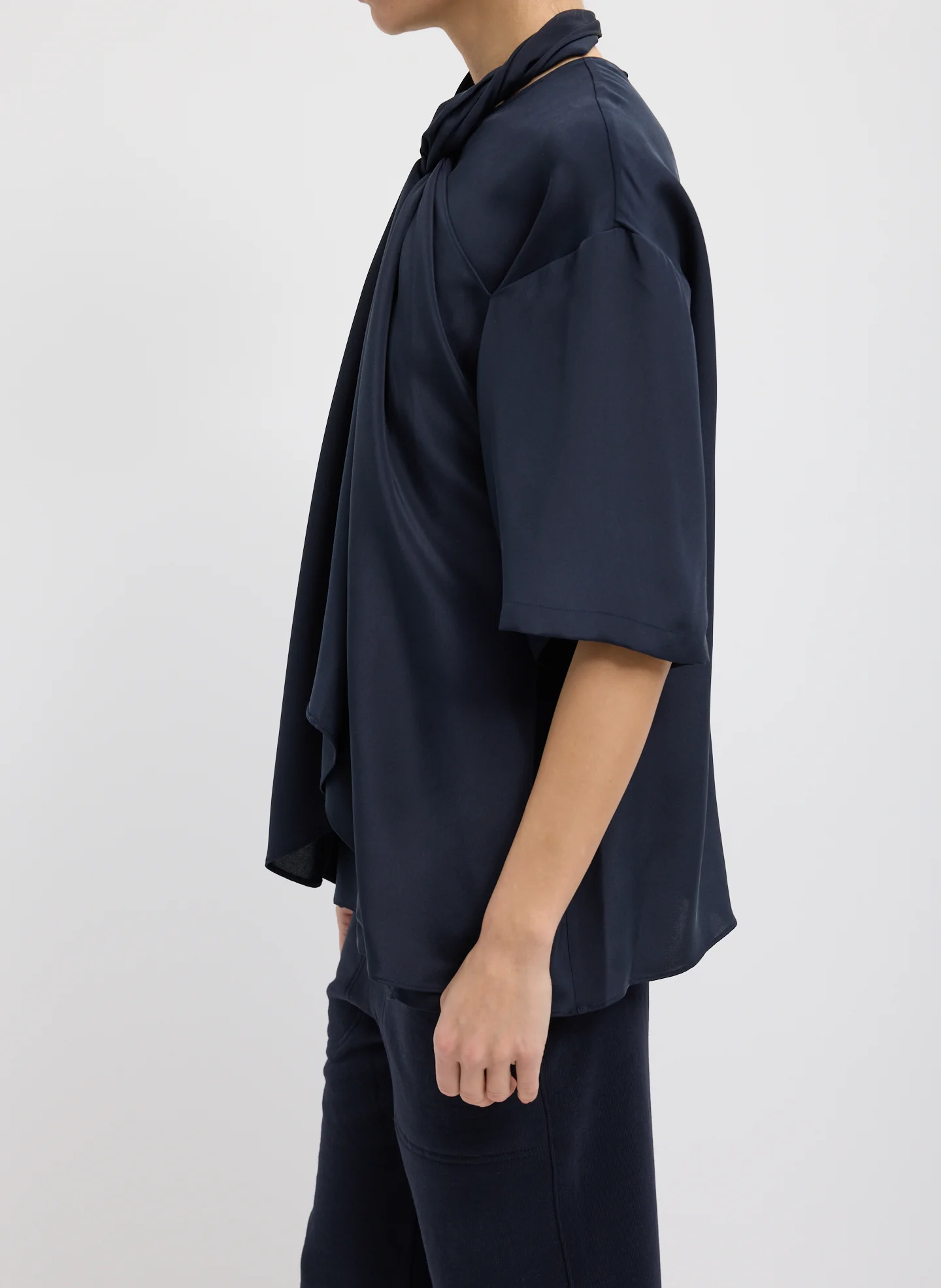 TIBI 4 Ply Silk Tie Front Top in Navy