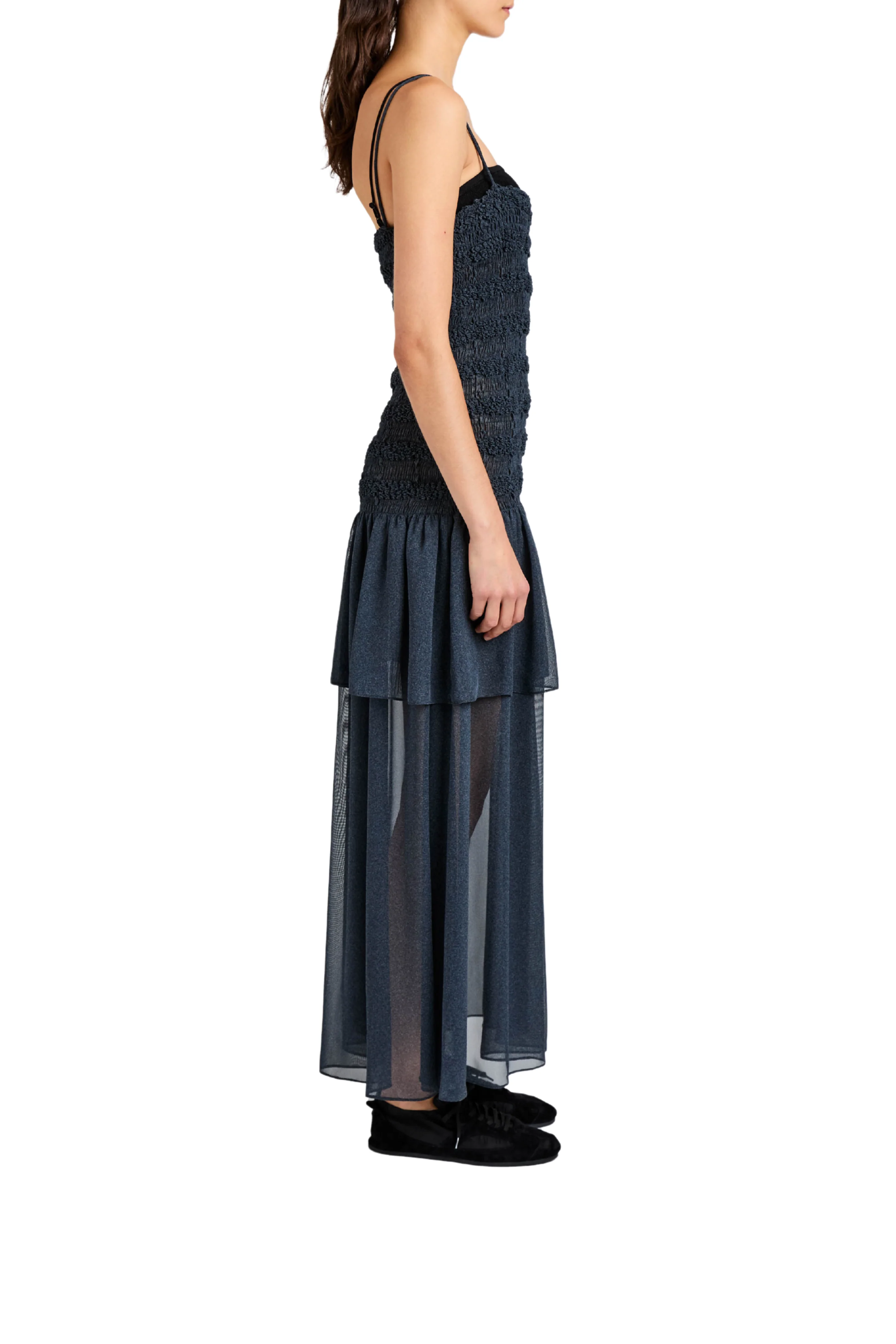 - Tiered layered skirt with sheer accents
